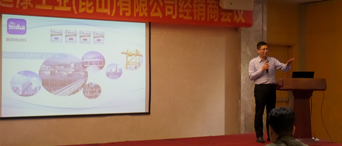 臺灣總公司李家慶工程師作‘水性工業(yè)防腐漆’報告,詳細介紹了水性工業(yè)防腐漆的優(yōu)勢和施工注意事項,并解答了現(xiàn)場嘉賓的疑問。