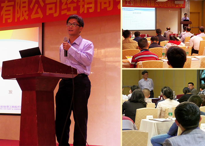營二部陳立平經(jīng)理作‘水性內外墻涂料’報告,針對新開發(fā)的內外墻系列產(chǎn)品作了現(xiàn)場說明。